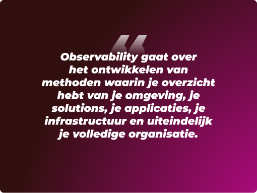 Observability is het vermogen om de interne toestand van je systemen te begrijpen aan de hand van logs, metrics en traces.